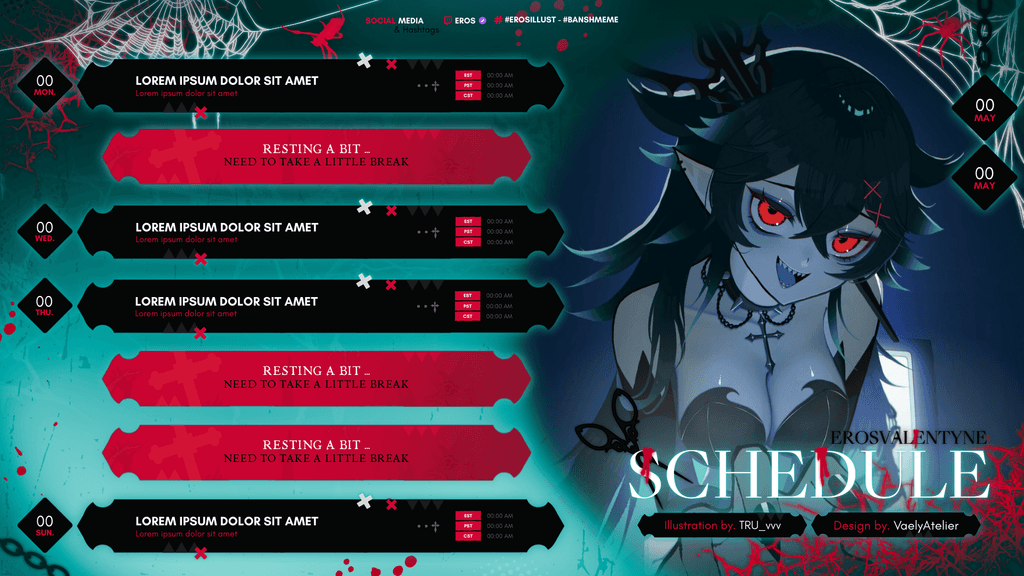 So I'm Vaely ! I am a Graphic Designer & Illustrator, I love designing things & bringing everyone's lovely ideas to life. I started digital art in 2022-2023 and since I started I have never stopped wanting to improve myself and learn even more ! .♡